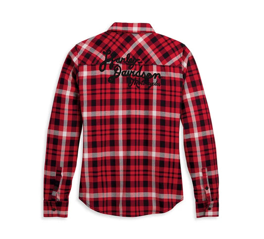 Camicia in flanella con carattere retrò da donna - YD Plaid - Chili Pepper