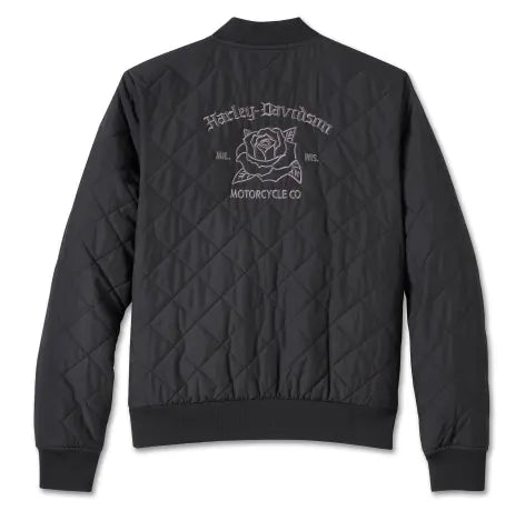 Giacca bomber da donna Harley-Davidson Old English Rose trapuntata nera
