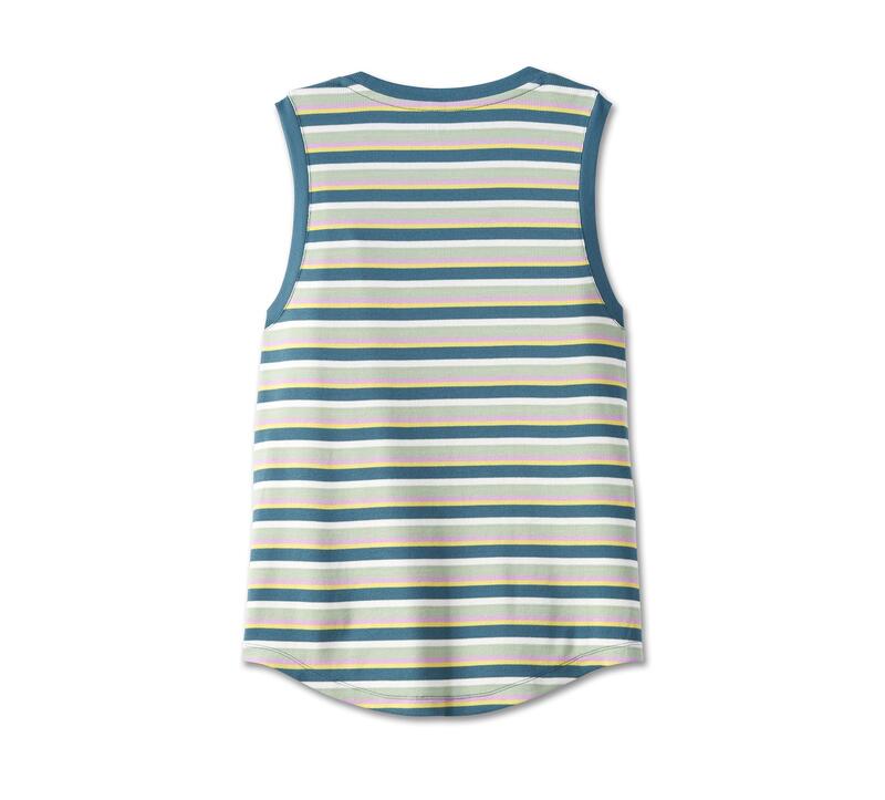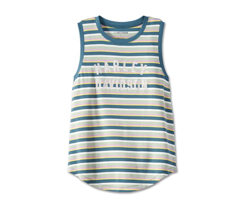 Per uno stile vivace e senza maniche che rappresenti il tuo marchio motociclistico preferito, indossa la nostra canotta a righe Division in edizione limitata. La sua struttura a coste in cotone/modal/spandex offre comfort, elasticità, morbidezza e traspirabilità, con una texture aggiuntiva (ingrandisci l'immagine per vederla). Questa vestibilità comoda presenta profili a contrasto e un orlo a costine che valorizza la silhouette. Disponibile in una colorazione estiva, il logo frontale richiama il nostro abbigliamento da corsa degli anni '30. Ordina subito: questo capo stagionale è in edizione limitata.