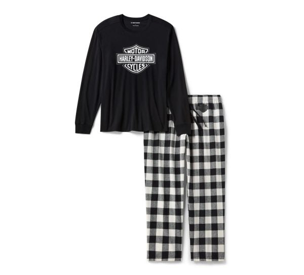 Pigiama da uomo Harley-Davidson Bar & Shield Buffalo Check nero/bianco