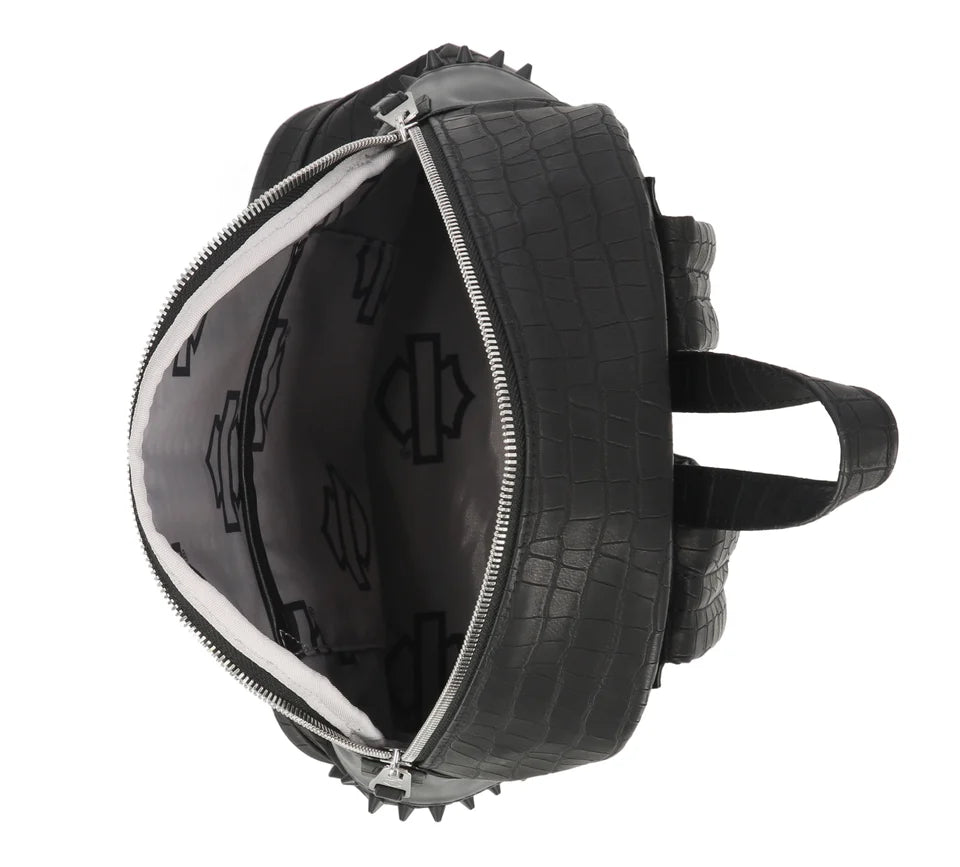 Nero su nero su nero...aggiungi qualche borchia e otterrai uno zaino chic, audace ed elegante per la donna sempre in movimento!